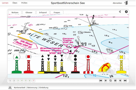 Die Theorie zum Sportbootführerschein See/Binnen erfolgt vorwiegend als Präsenzseminar und kann in Teilbereichen (wie den SBF Binnen) auch online erfolgen. Mittels einer Lern-App-Pro kann man das ganze noch ergänzen. Die Praxis zum SBF findet auf dem Main in Frankfurt statt. Ziel ist eine praxisnahe Vorbereitung mit klarer Struktur.